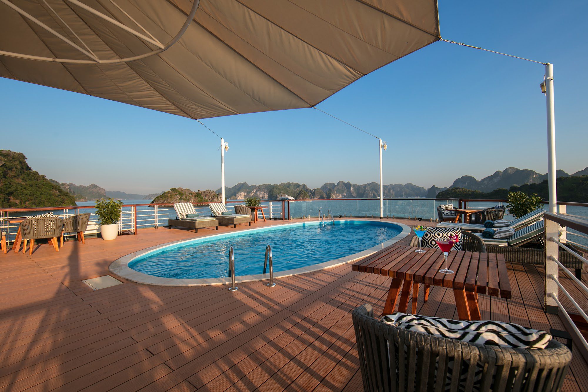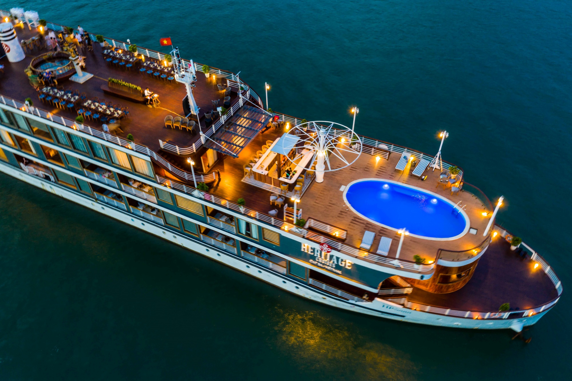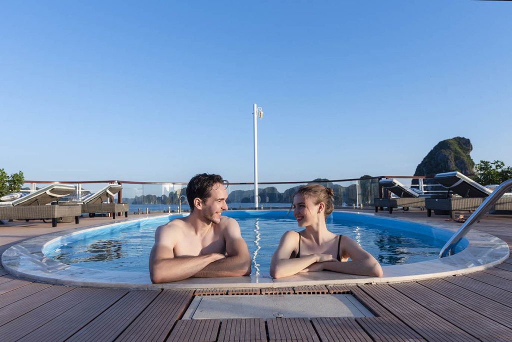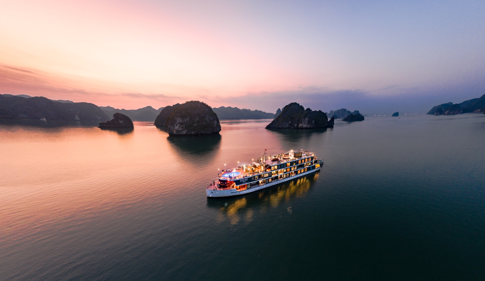 17:30 Return to Heritage Cruises, enjoy life aboard the vessel or in your suite, and with a cocktail in hand watch the sunset over the Gulf of Tonkin.