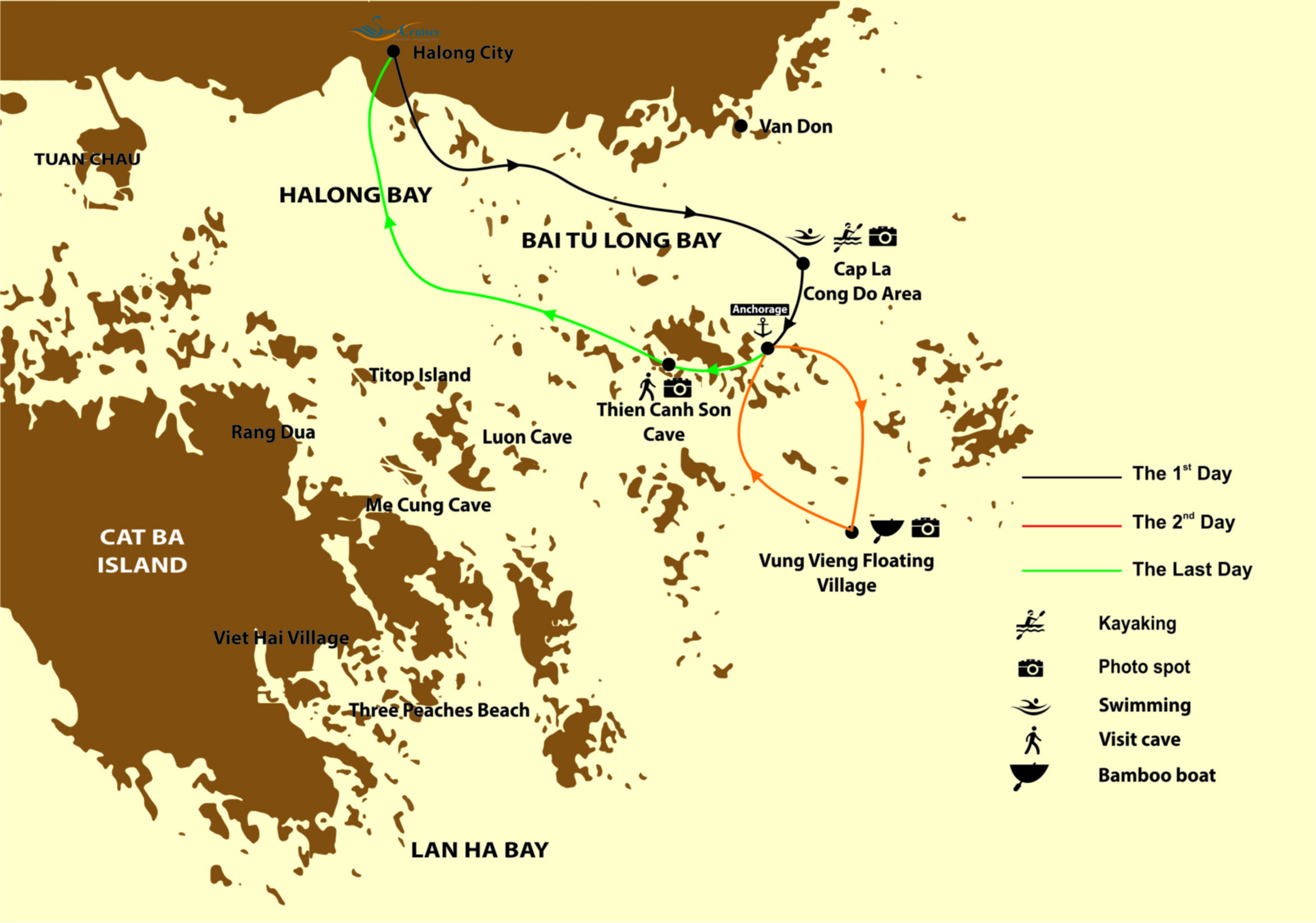 15.00: Arrive in the kayaking area – that is Cap La Island. Enjoy kayaking through the karst and breathtaking nature, swimming and relaxing.
