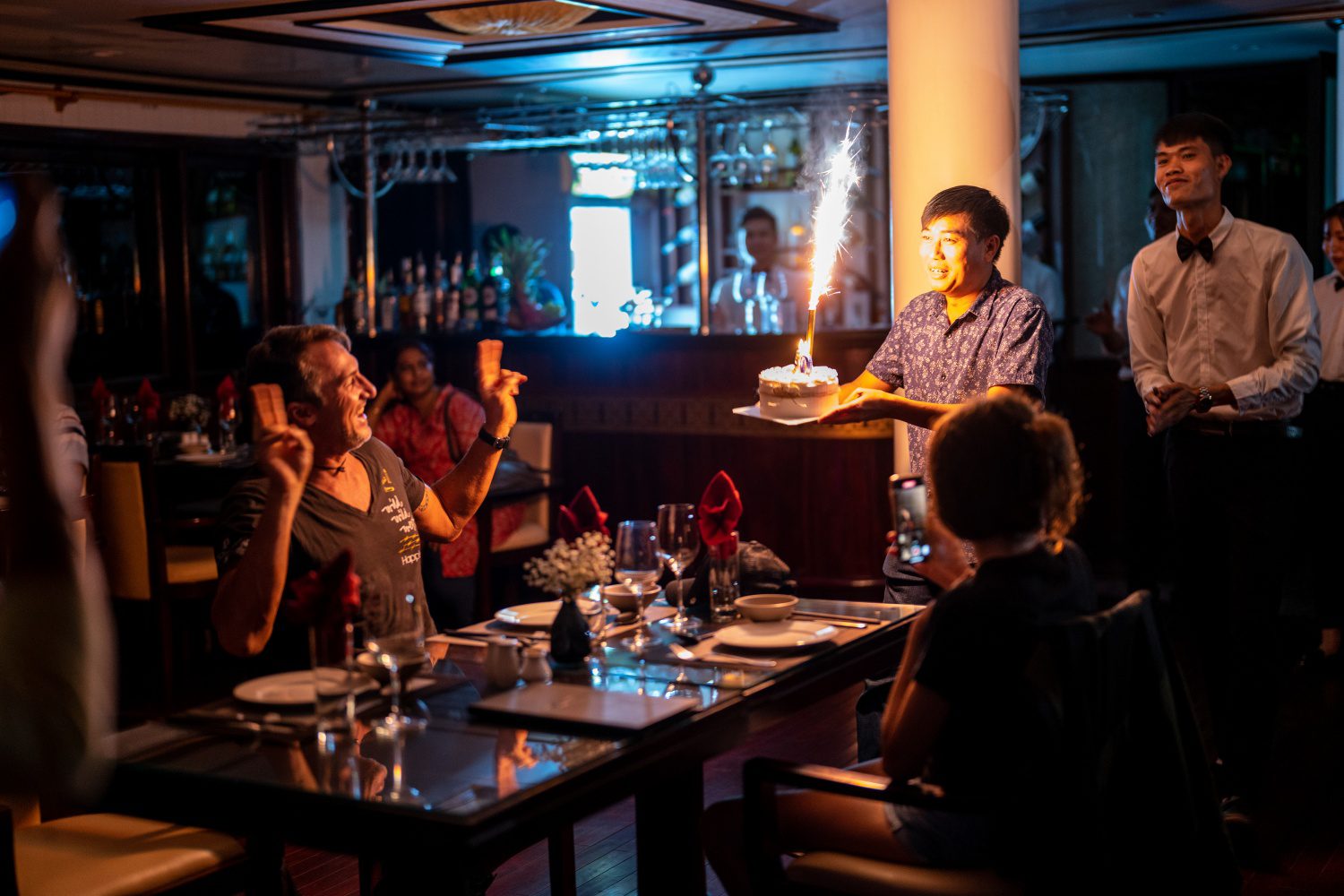 20.30: Free time to challenge yourself in Vietnamese puzzle games, or gather your group/family for a board game; try your luck with squid fishing or simply have a cocktail and enjoy the quiet night on the bay.