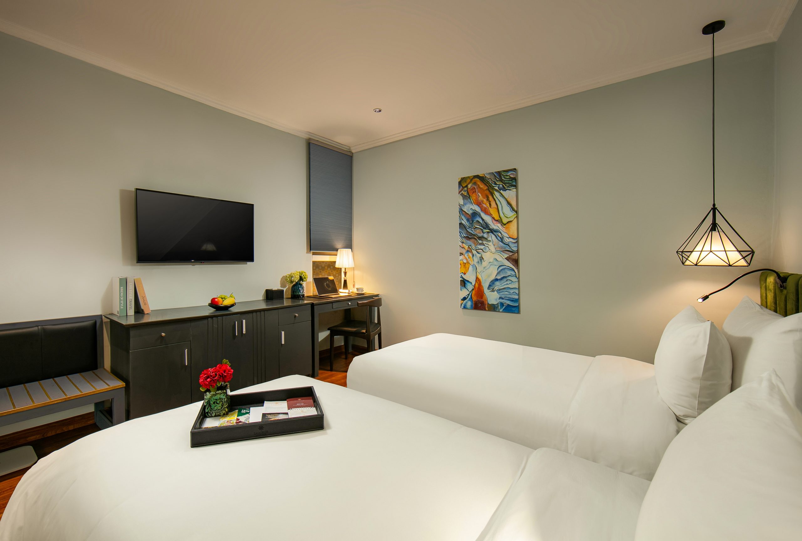 Một hỗn hợp của giường đôi và hai giường đơn. Một số phòng Deluxe và Superior thông nhau qua cửa nối.